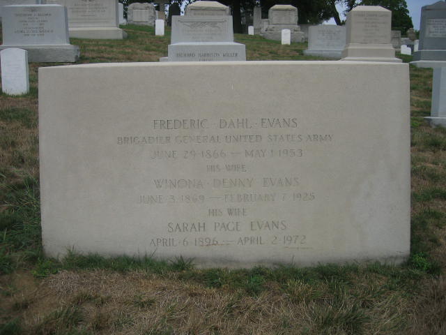 - [S973] Find A Grave: Arlington National Cemetery, Arlington, Virginia, Frederic Dahl Evans, created by John C Anderson, added Mar 2010, memorial number 49179450.
