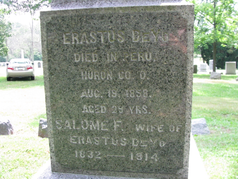 - [S4510] Find A Grave: Westwood Cemetery, Oberlin, Ohio, Erastus DeYo, created by LindaB; KeepsakeQuilter, added Feb 2010, memorial number 47803566.