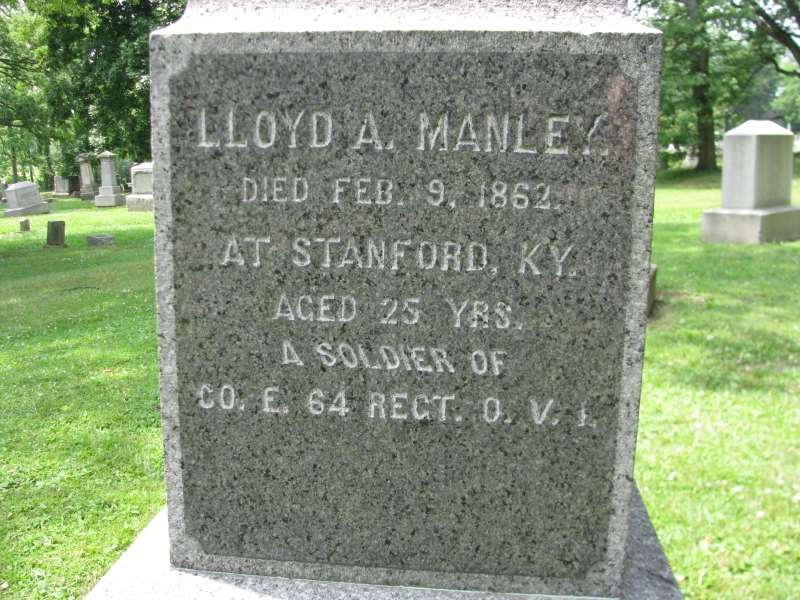 - Lloyd A Manley died on 9 February 1862 in Stanford, Kentucky, at age ~25.1