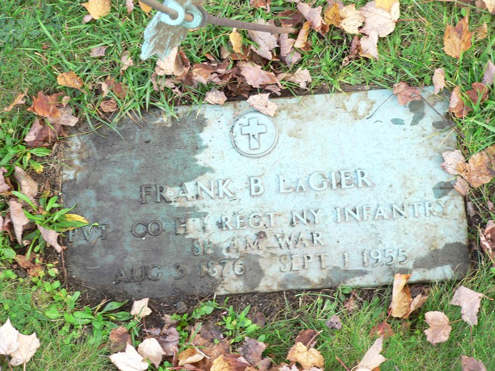 - [S7138] Find A Grave: Riverside Cmetery, Endicott, New York, Pvt Frank Benjamin LaGier, created by Paul R, added Oct 2010, memorial number 60450228.