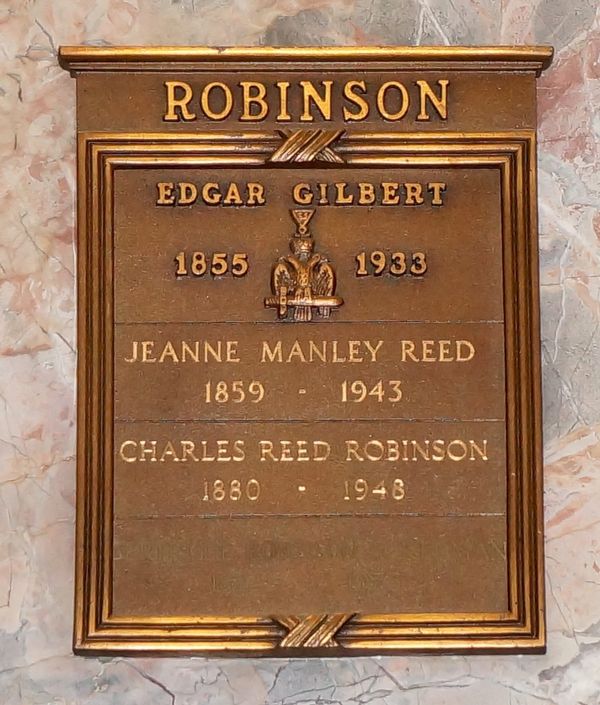 - [S2763] Find A Grave: Forest Lawn Memorial Park (Glendale), 1712 S Glendale Ave, Glendale, California, Charles Reed Reed Robinson, created by Find A Grave, Chris Mills, added Feb 2012, memorial number 85499179.