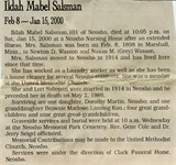- An obituary was published in The Winona Daily News, Winona, Minnesota, on 15 May 1920.3