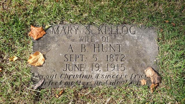 - [S7692] Find A Grave: Evergreen Burial Park, Roanoke, Virginia, Mary Staples Kellog Hunt, created by Karen, added Oct 2011, memorial number 79470561.
