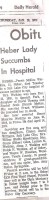 This community was greatly shocked Sunday to hear of the death of Mrs A. D. Dimmick at her home near Glenwood. She had been ill with the measles and getting over them nicely when complications set in and she declined rapidly.