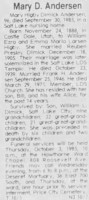 - [S2454] Find A Grave: Price City Cemetery, Price, Utah, Mary Higby Anderson, created by L Finley, added Jul 2009, memorial number 39083984.