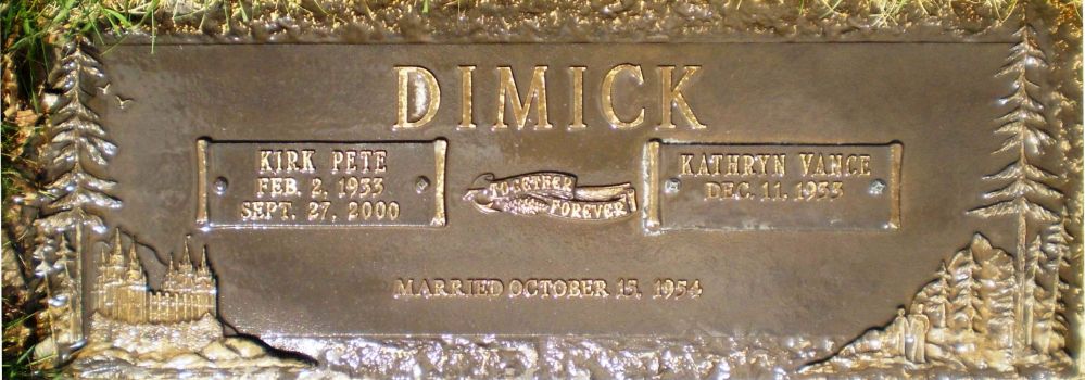 - Kathryn married Kirk Pete Dimick, son of Reuben Rex Dimick and Mary Dorothy Adams, on 15 October 1954 in Salt Lake City, Utah.1