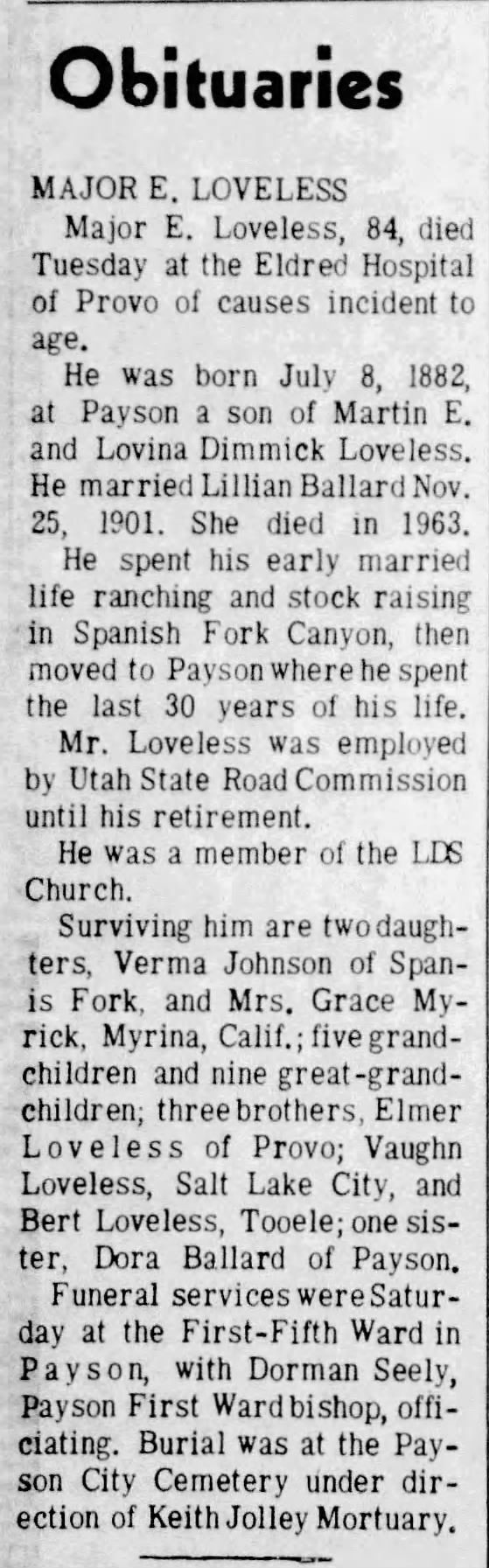 Max was born in Payson on May 16, 1918, to William Hill and Rose Alba Loveless Searle.