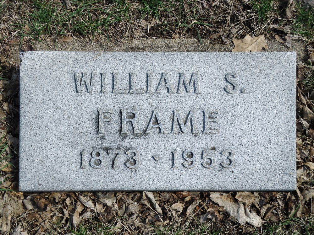- [S7079] Find A Grave: Prairie Home Cemetery, Waukesha, Wisconsin, William Sommerville Frame, created by Mary Knothe Cooney, Angie Robinson, added May 2010, memorial number 53073683.
