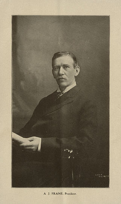Andrew J. Frame, President of the Waukesha National Bank, is a native of Waukesha County and was born in the village of Waukesha February 19, 1844. His parents, Maxwell and Jane (Aitkin) Frame, were born in Ayrshire, Scotland, and emigrated from that country to the United States in 1840. They first made their home in western New York, and from there came to Waukesha, Wis., in 1841. The father died in the latter part of 1844, leaving a wife and two children, Henry M. and Andrew J. the last named being then but an infant ten months old. Mrs. Frame remained in Waukesha.