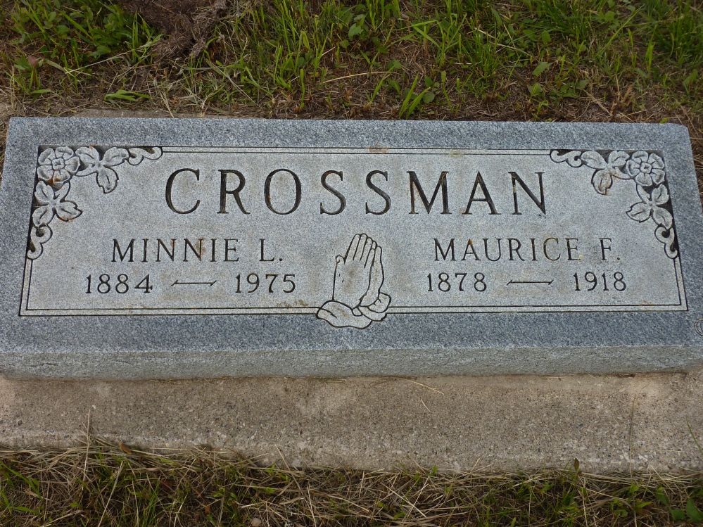 Maurice Freer Crossman son of Mrs. and Mr. George E. Crossman of this place was born March 14, 1878 in Plainview, Minnesota and died at his home in Vananda, Montana, Sunday morning at 2:30 o'clock, on March 10 1918 at the age of 39 years 11 months and 27 days. Had he lived four days longer he would have reached his fortieth birthday.