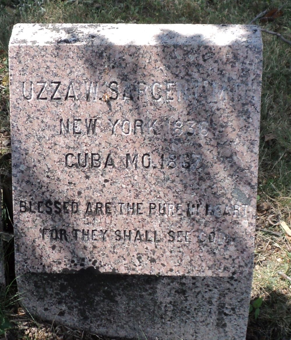 Source Citation: Year: 1880; Census Place: Kansas City, Jackson, Missouri; Roll: 693; Family History Film: 1254693; Page: 332B; Enumeration District: 011; Image: 0094. Uzzel F. Sargent occupation printing 43 Maggie Sargent 34 Lena Sargent 15 Jesse Sargent works in printing office 12 Willie Sargent 7 Mamie Sargent 3 Lottie Sargent 2m.