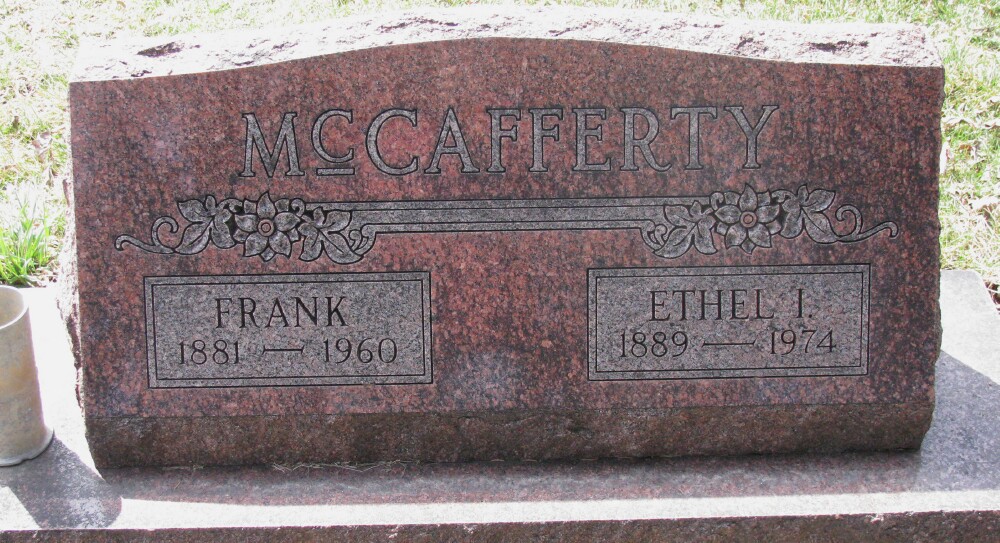 - [S6421] Find A Grave: Grandview Cemetery, Fort Collins, Colorado, Frank McCafferty, created by KET, Derald Johnson, added Mar 2010, memorial number 50411770.