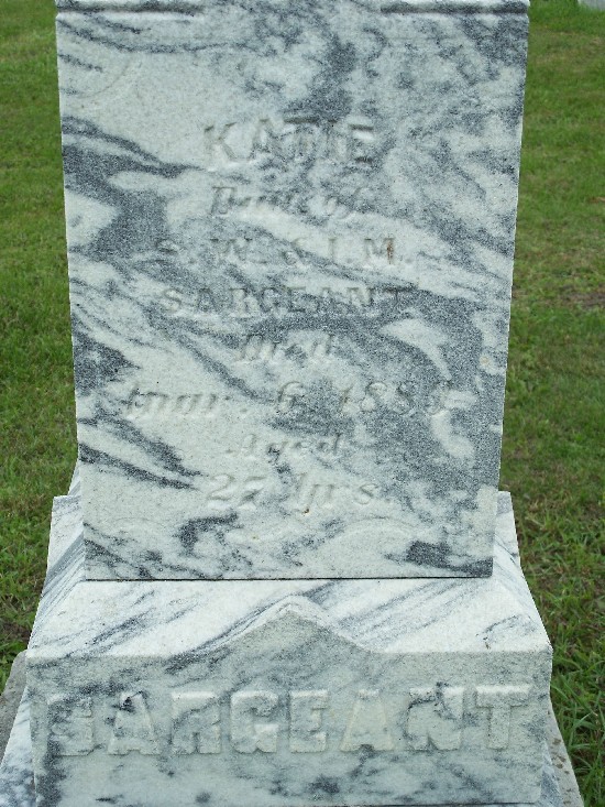 - Katie Alida Sargeant died on 6 March 1889 at age 27.1