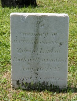 - [S733] Connecticut Marriages and Deaths 1790-1837, online image of printed material, digitized by NEHGS, 2005, www.newenglandancestors.org. (Original publication: Bowman, John Elliot "Some Connecticut marriages: 1820-1837, Items from the Norwich Courier, and other Connecticut newspapers," "Connecticut Deaths 1792-1833" 14 vols, R Stanton Avery Collections,) Matilda Rockwell, Connecticut Deaths: from files of Connecticut Observer, vol Deaths: 1825, page 72 Death seems to be 30 Aug; gravestone has 10 Aug so I am using that date.