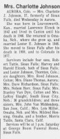 - [S9200] Argus-Leader, Sioux Falls SD, Newspaper, Mrs Charlotte J Johnson obituary notice, published 9 Feb 1979 p 21.