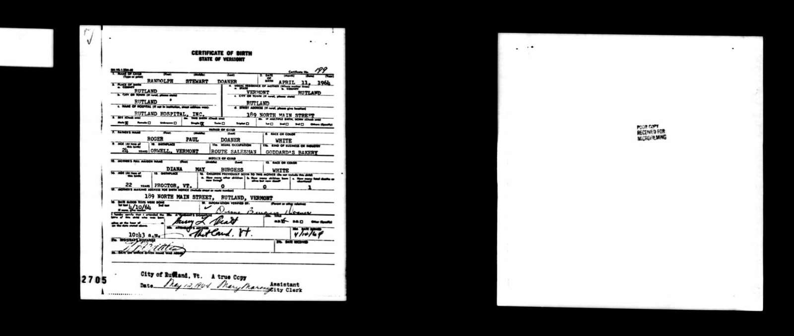- Randolph Stuart Doaner was born on 11 April 1964 in Rutland, Vermont.1