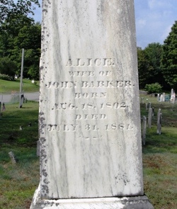 - Alice married John Barker, son of Jesse Barker and Prudence Paine, estimated 1822.1,2