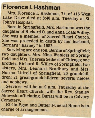 Cremation will be accorded by Butler Cremation Tribute Center. A memorial gathering will be held from 1:00 to 4: 00 p.m. on Saturday, June 26, 2010 at Kirlin-Egan & Butler Funeral Home, 900 S. 6th St, Springfield. Memorial contributions may be made to American Lung Association, 3000 Kelly Lane, Springfield, IL 62707.1