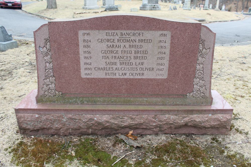 - [S4252] Find A Grave: Pine Grove Cemetery, Lynn, Massachusetts, George Rodman Breed, created by Ace, John Gibney, added Jul 2009, memorial number 39047434.