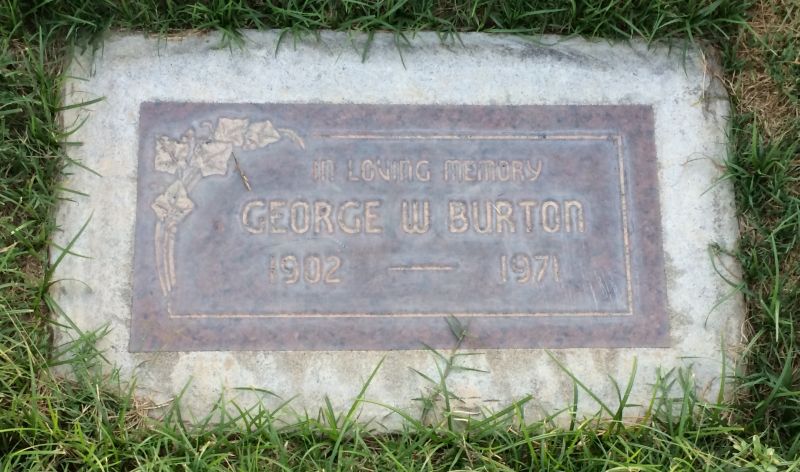 - [S7528] Find A Grave: Perris Valley Cemetery, Perris, California, George W Burton, created by Find A Grave, David Woody, added Feb 2012, memorial number 85329136.