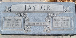 Robert Taylor was born at Lehi, Dec. 20, 1871, and was the son of Taylor (sic). He married Agnes Giles of Springville April 13, 1902, and his wife, with two children, a boy and a girl, survive him. He was an efficient officer, a loving husband and father, and a well-respected citizen, and his untimely death will be regretted by a large circle of relatives and friends.