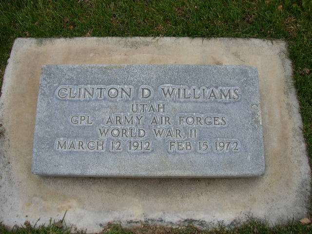 - [S2435] Find A Grave: Spanish Fork City Cemetery, Spanish Fork, Utah, Clinton David Williams, created by Find A Grave, Jahn Warnke, added Nov 2005, memorial number 12293759.