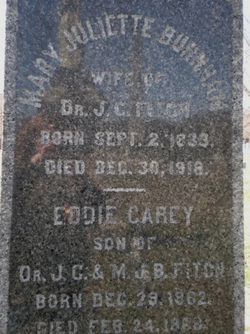 - [S4362] Find A Grave: Old Willimantic Cemetery, Willimantic, Connecticut, Eddie Carey Fitch, created by Amelia (Cromby) Christy, added Feb 2007, memorial number 17862109.