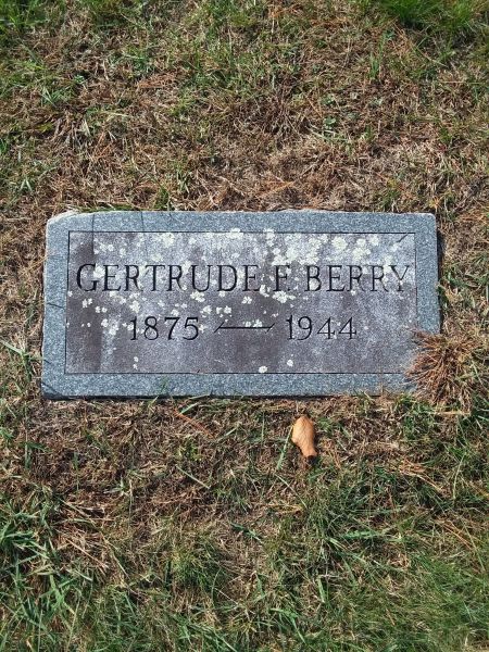 - [S8517] Find A Grave: Pine Grove Cemetery, Kingston, New Hampshire, gertrude Frances Stevens Berry, created by Chris Ferraiolo, added Nov 2020, memorial number 219198401.