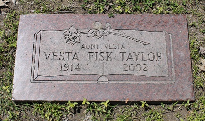 - [S5763] Find A Grave: Grand Army of the Republic Cemetery, Miami, Oklahoma, Vesta Fisk Taylor, created by Daphne Roberts, Judy K Roberts, added May 2015, memorial number 146231491.
