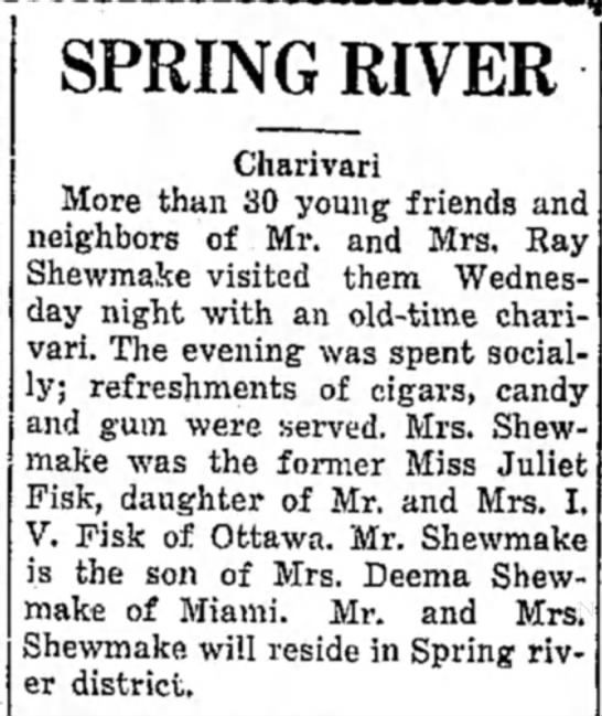 - Juliet married Ray Palmer Shewmake estimated 1941.5,6