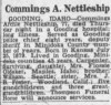 - [S3382] Find A Grave: Elmwood Cemetery, Gooding, Idaho, Commings Archibald Nettleship, created by Danny Driesel, added Aug 2013, memorial number 115477989.