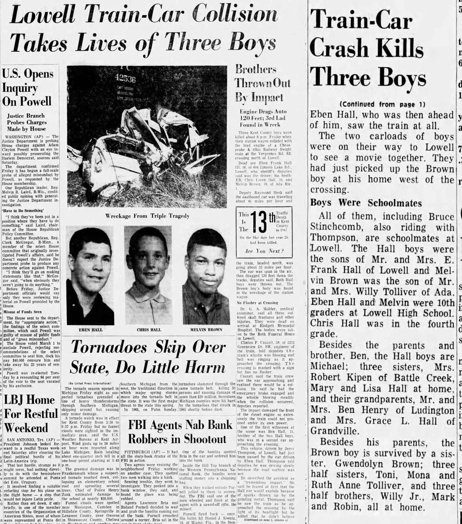- [S9850] The Grand Rapids Press, Grand Rapids MI, Newspaper, Newspaper article published 15 Apr 1967 p 1 & 2.