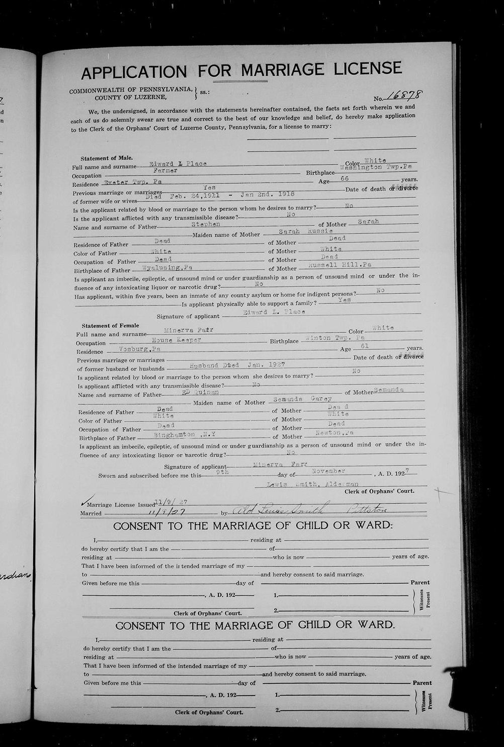 - Edwin married Minerva Inman, daughter of Eber Ebenz Inman and Samantha Garey, on 9 November 1927 in Luzerne County, Pennsylvania.2
