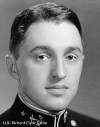 Dick was born to William Clyde Glenn and Belle Hatch Glenn on 28 May 1918. He was born in Perry, but his family moved to Manhattan soon thereafter. Growing up in Kansas, the ocean was not a part of Dick's childhood, but he apparently caught the sea air anyway! He attended Annapolis and was active in school activities as a cadet. The 'Lucky Bag' documents Dick's activities as Baseball Manager, member of the choir, and advertising manager for Reef Points.