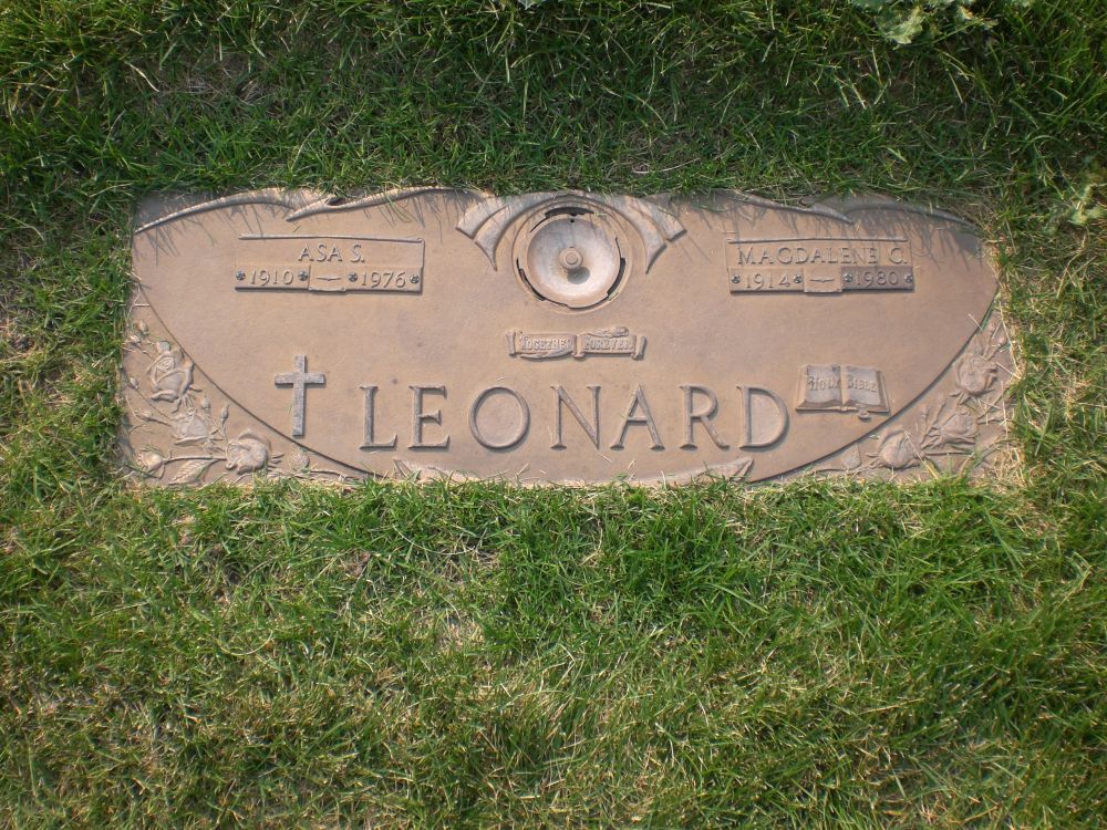 - [S3746] Find A Grave: Olinger Highland Mortuary and Cemetery, thornton, Colorado, Asa S Leonard, created by Michael, added Oct 2009, memorial number 43126348.