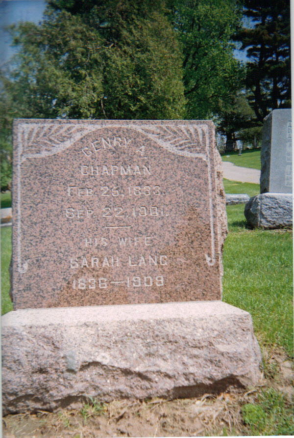 - [S4074] Find A Grave: Cass Township Cemetery, Strawberry Point, Iowa, Sarah Jane Lang Chapman, created by Sue Straight, added May 2014, memorial number 130249965.