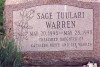 - [S4013] Find A Grave: Storrs Cemetery New), Storrs, Connecticut, Sage Tuulari Warren, created by Anonymous88, added Feb 2011, memorial number 65296629.