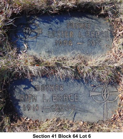 - [S8318] Find A Grave: Holy Sepulchre Cemetery, Alsip, Illinois, Lester Irl Brace, created by Lanie, added Dec 2019, memorial number 205229054.