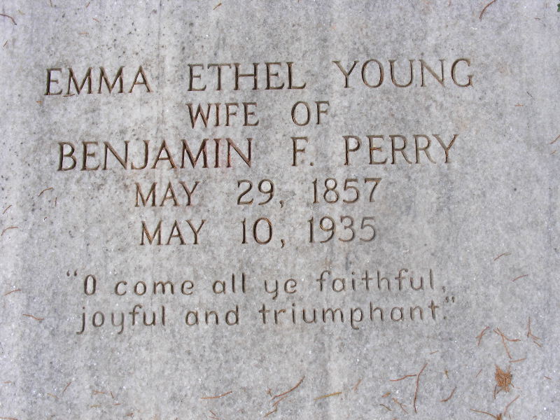 - [S4288] Find A Grave: Young-Thackston-Perry Cemetery, Canterbury, South Carolina, Emma Ethel Young Perry, created by Chris Smith, added Aug 2009, memorial number 41044662.