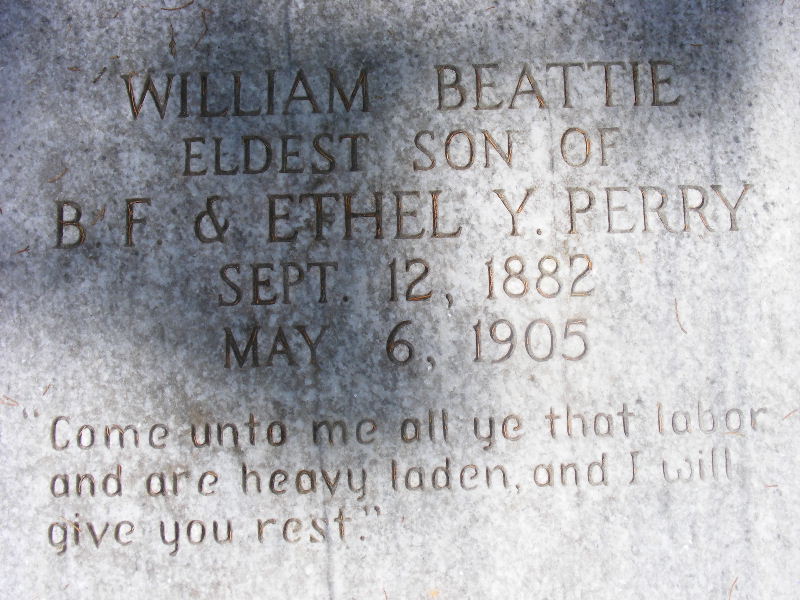 - [S4288] Find A Grave: Young-Thackston-Perry Cemetery, Canterbury, South Carolina, William Beattie Perry, created by Chris Smith, added Aug 2009, memorial number 41044636.