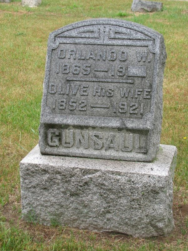 - Olive married Orlando W Gunsaul, son of Edwin Gunsaul and Lucy A Benton, on 8 November 1906 in Allegan, Michigan.1,2