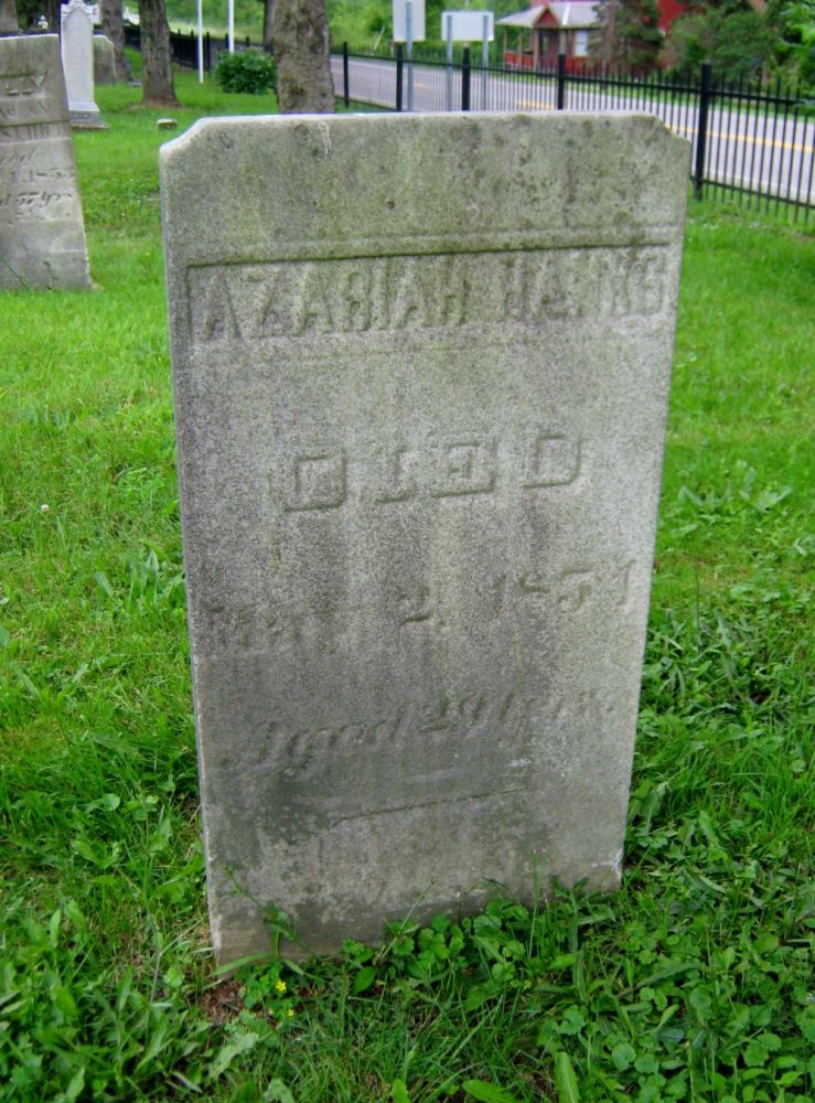- [S5168] Find A Grave: Hillside Cemetery, West Farmington, Ohio, Azariah Hanks, created by Joel Davison, added Nov 2011, memorial number 81132394.