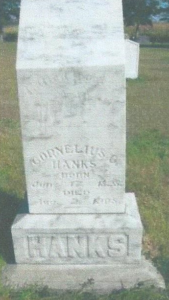 Cornelius Hanks was born June 17, 1828 at Salem, N.Y. and Frances Fruit was born Dec. 30, 1830 in Missouri. They were married Dec. 29, 1850 in Adams Co. Ill. They lived at Shenandoah, Iowa. They had 8 children.
