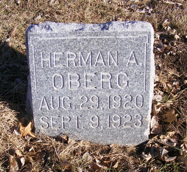 - [S5001] Find A Grave: Aurora Cemetery, Aurora, Nebraska, Herman A Oberg, created by John Quiring, added Jan 2015, memorial number 142035616.