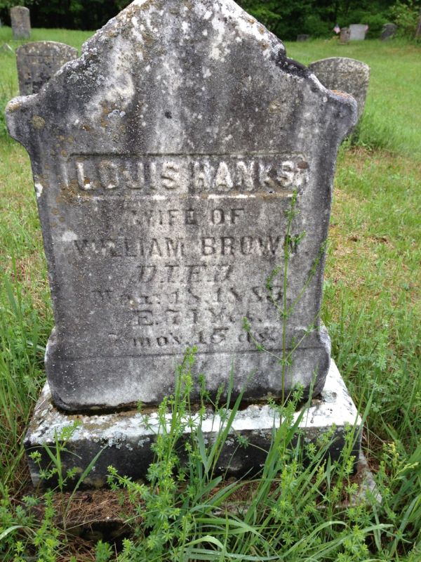 - [S5036] Find A Grave: Lakeville Baptist Church Cemetery, Cossayuna, New York, Louisa Hanks Brown, created by Caroline Hoag, added Nov 2012, memorial number 101484184.