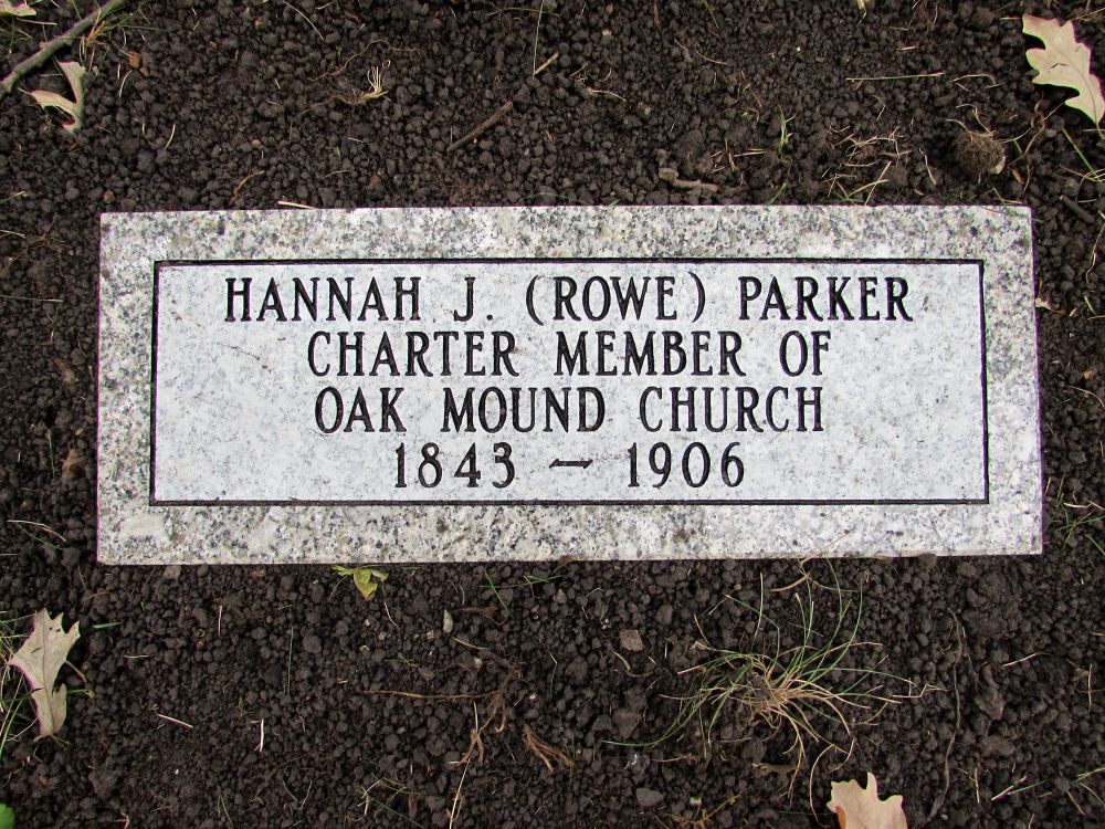 - Hannah J Rowe was a charter member of the Oak Mound Congregational Church, and its treasurer.1