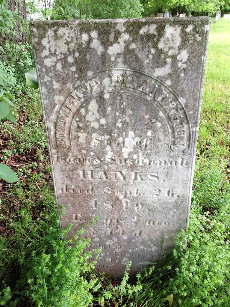 - [S5036] Find A Grave: Lakeville Baptist Church Cemetery, Cossayuna, New York, Isaac Hanks, created by Caroline Hoag, added Jul 2013, memorial number113291360.