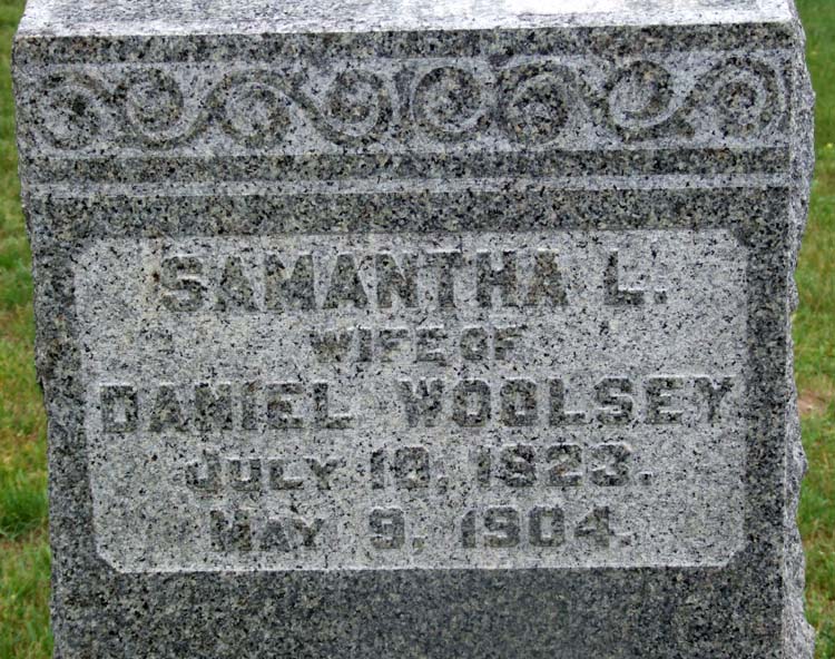 - [S5307] Find A Grave: Hotchkiss Cemetery, Marshall, Michigan, Samantha L Young Woolsey, created by With love Gen Gal, added Jun 2008, memorial number 27507583.