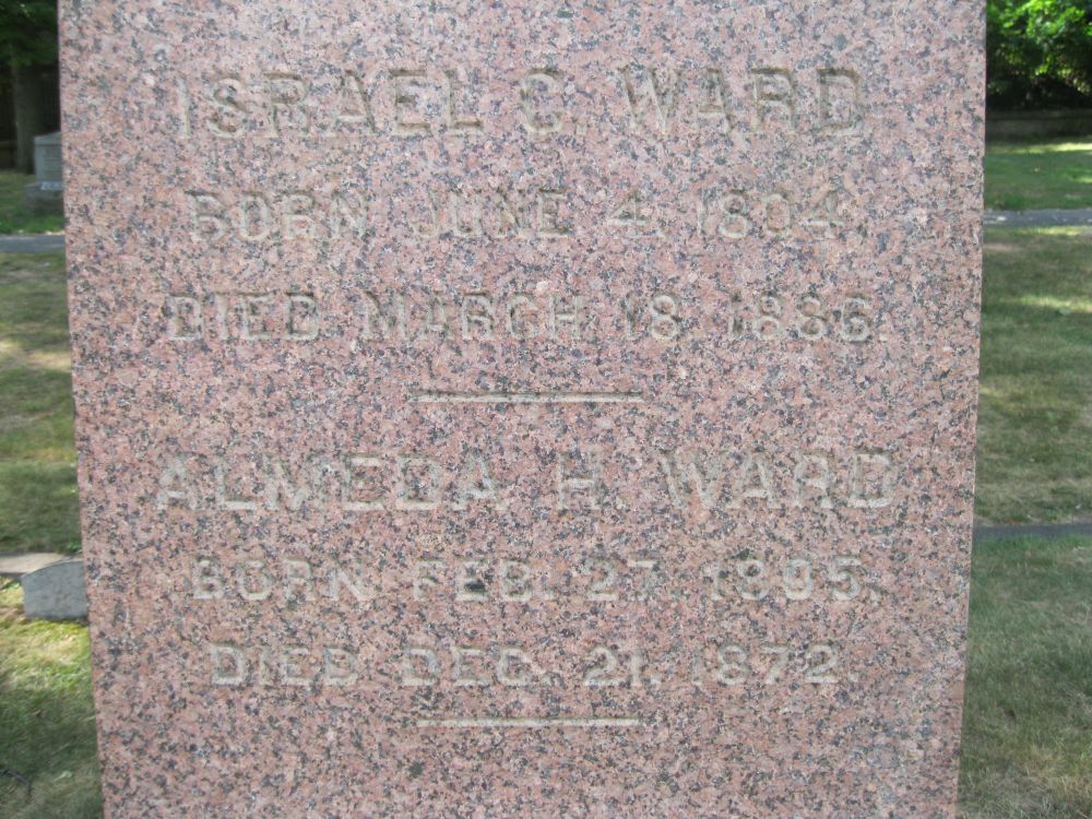 - [S5320] Find A Grave: Bloomfield Cemetery, Bloomfield, New Jersey, Israel Currie Ward, created by NotYourTime, added Jan 2011, memorial number 64151259.