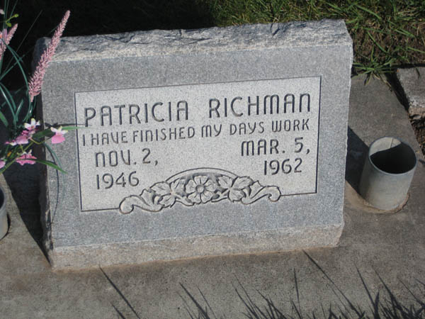 Besides her Parents and Husband she was preceded in death by a daughter Patricia Richman and 6 brothers - James Siddoway, Bill Siddoway, Denton Siddoway, Grant Siddoway, Forest "Bud" Siddoway and Jack Siddoway.